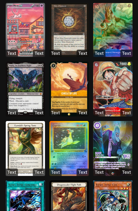 Sorted is the all-in-one app to scan, manage, and track your Pokémon, Magic: The Gathering, Yu-Gi-Oh!, One Piece, Lorcana, and Flesh and Blood collections.